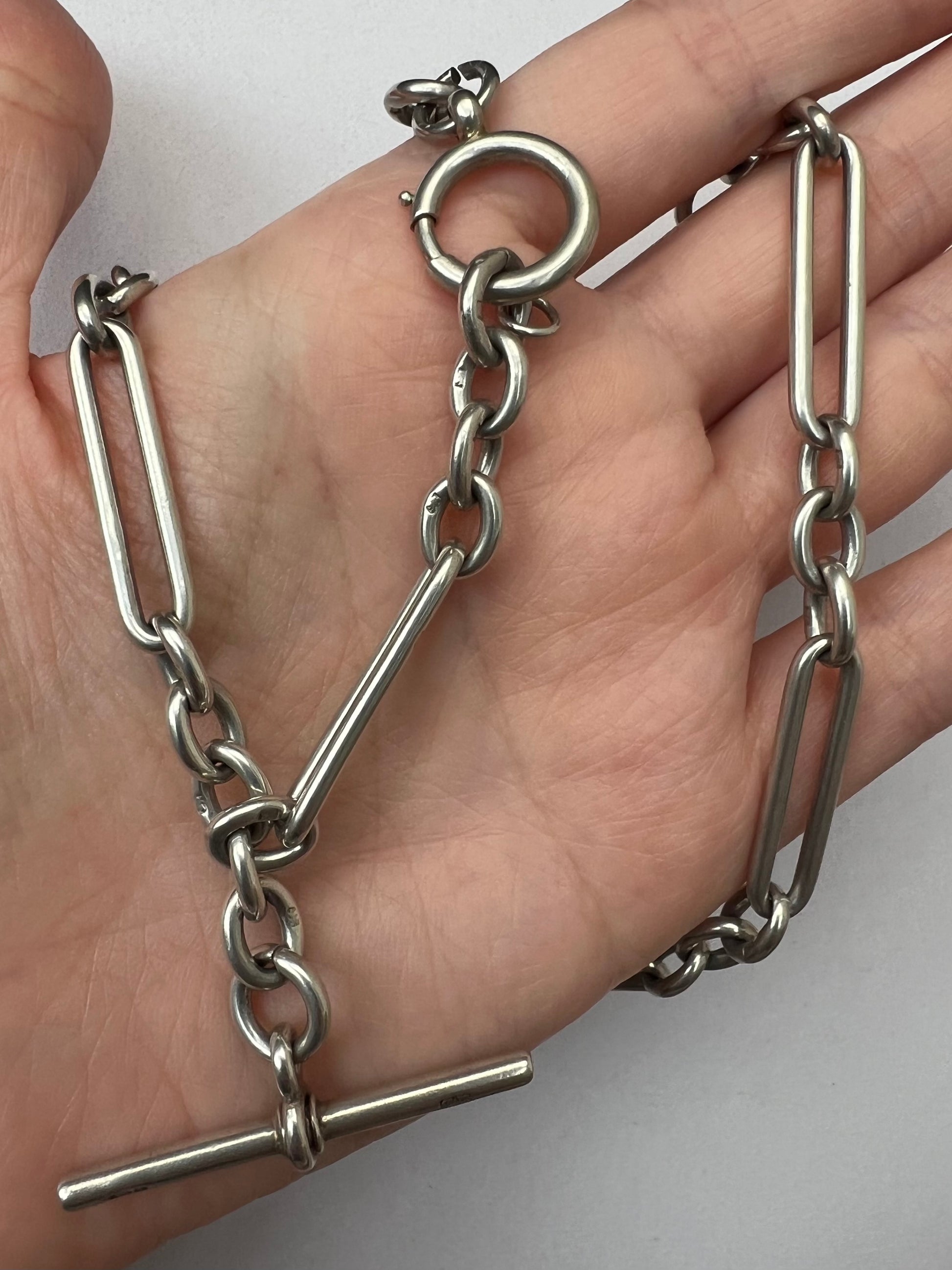 Silver Albert Fetter Chain With Paperclip Trombone Links and T Bar