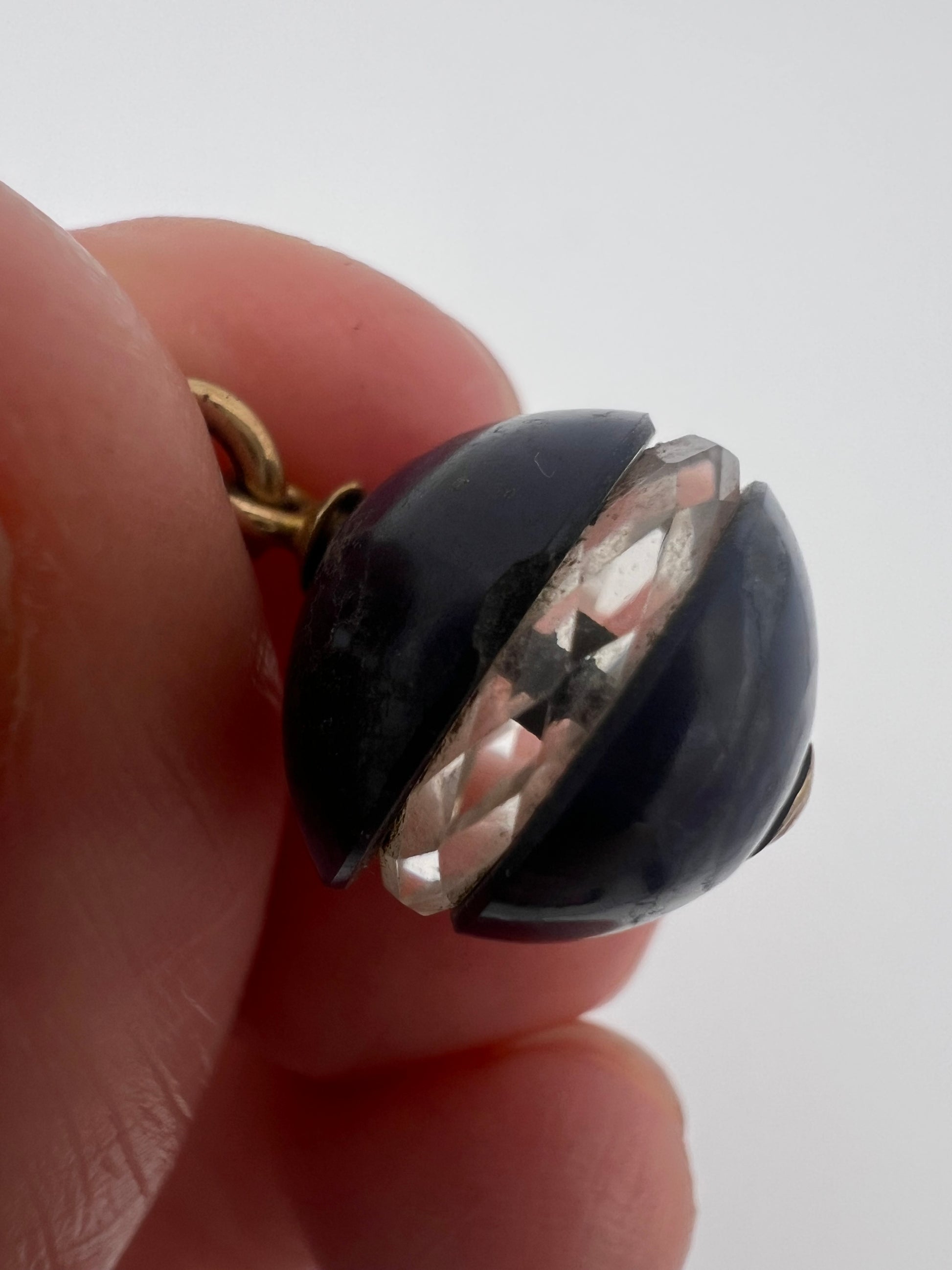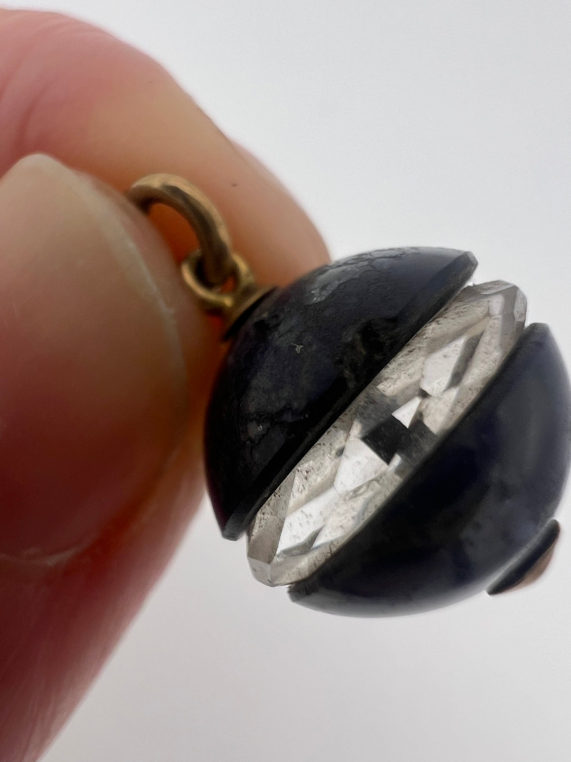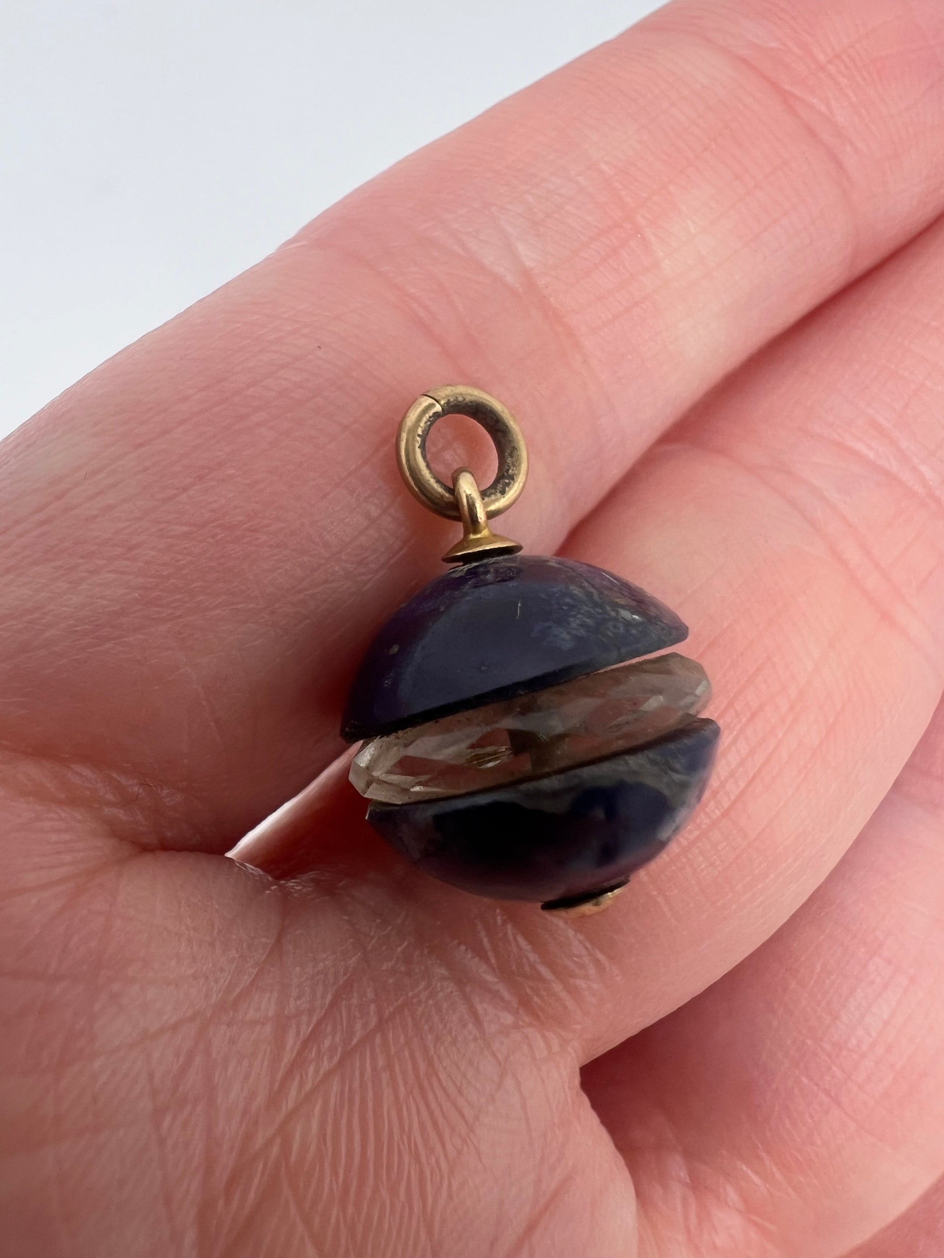 Lapis Lazuli and Rock Crystal Quartz Blue Orb Charm Art Deco Pendant