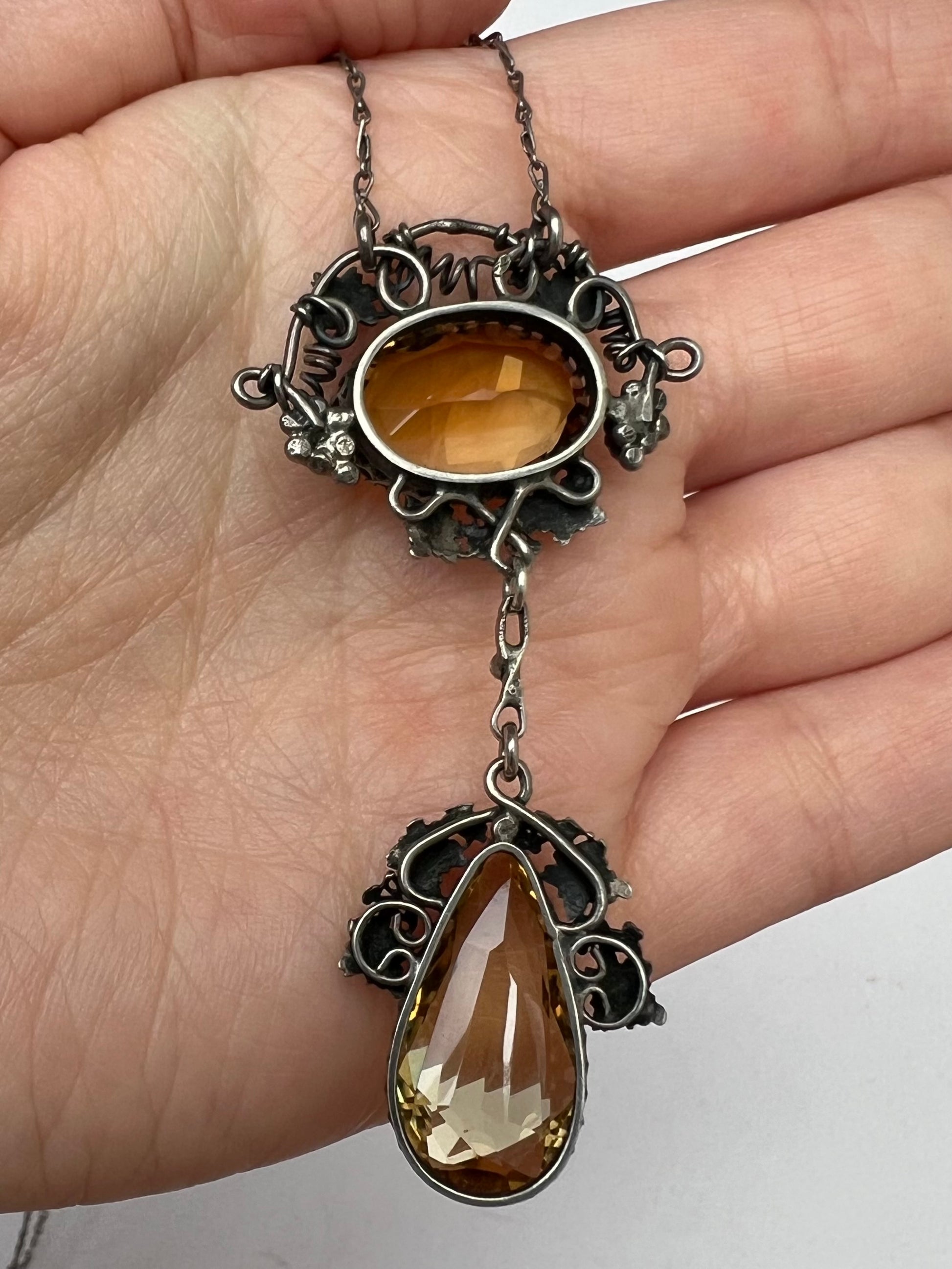 Description: A very intricate, hand made arts and crafts pendant. We're still working on attributing a maker to this one (we have some ideas but we don't like to throw attributions around willy nilly!)