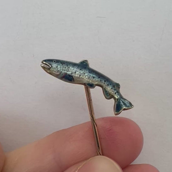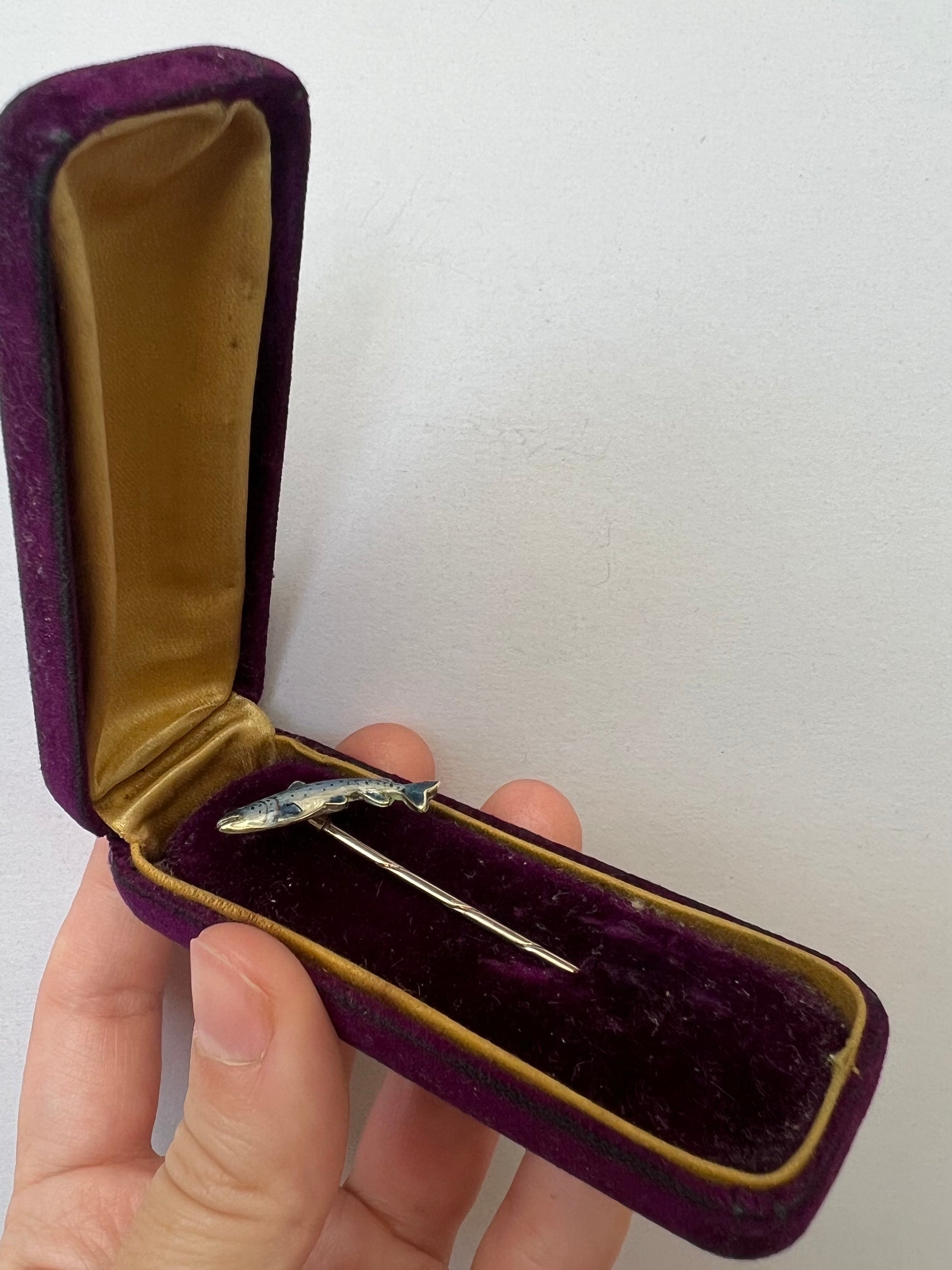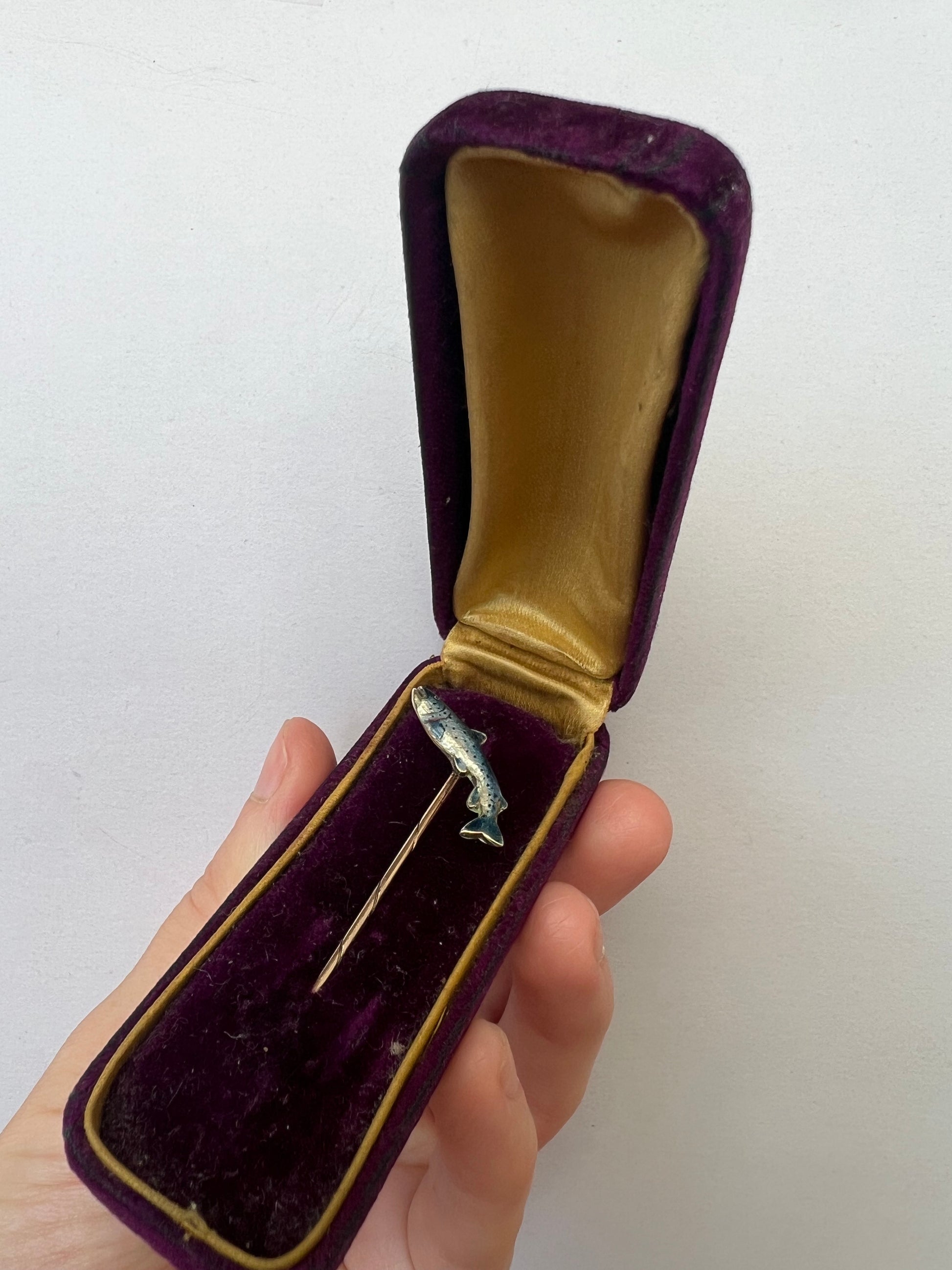 Alabaster & Wilson Fly Fishing Interest Trout or Salmon Gold & Enamel Fish Stick or Stock Pin