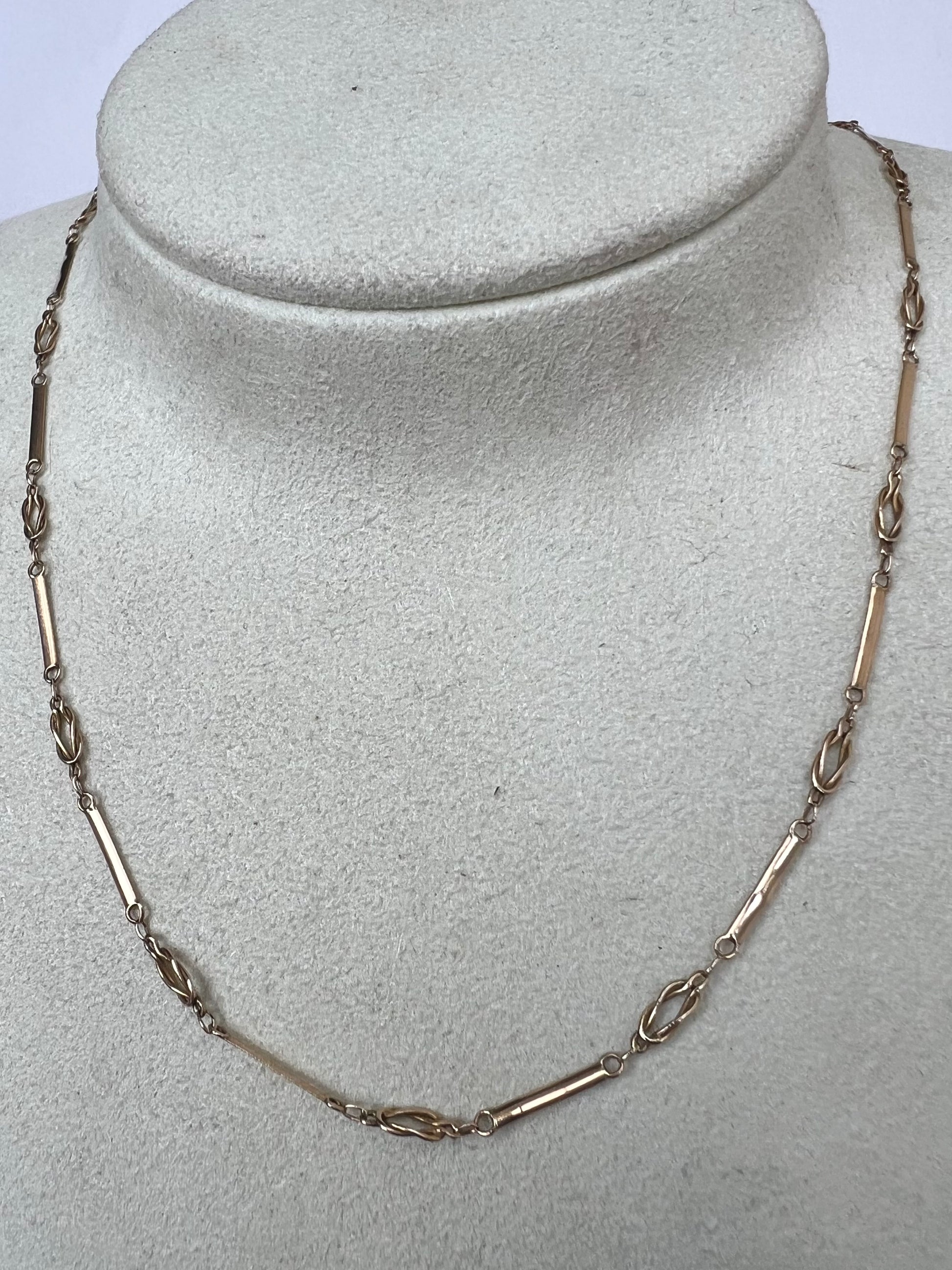 Delicate 15ct Gold Fancy Link Knot And Bar Neck Chain