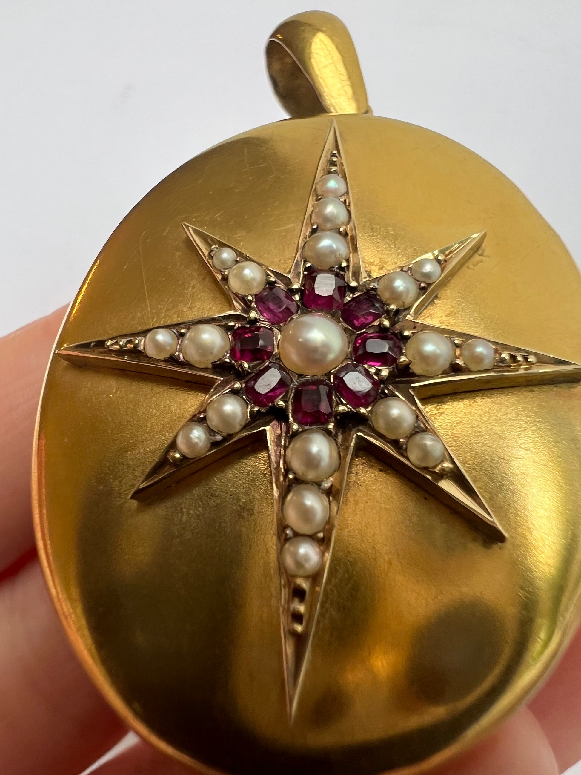 Victorian Gold Ruby Pearl Large Locket Star Pendant