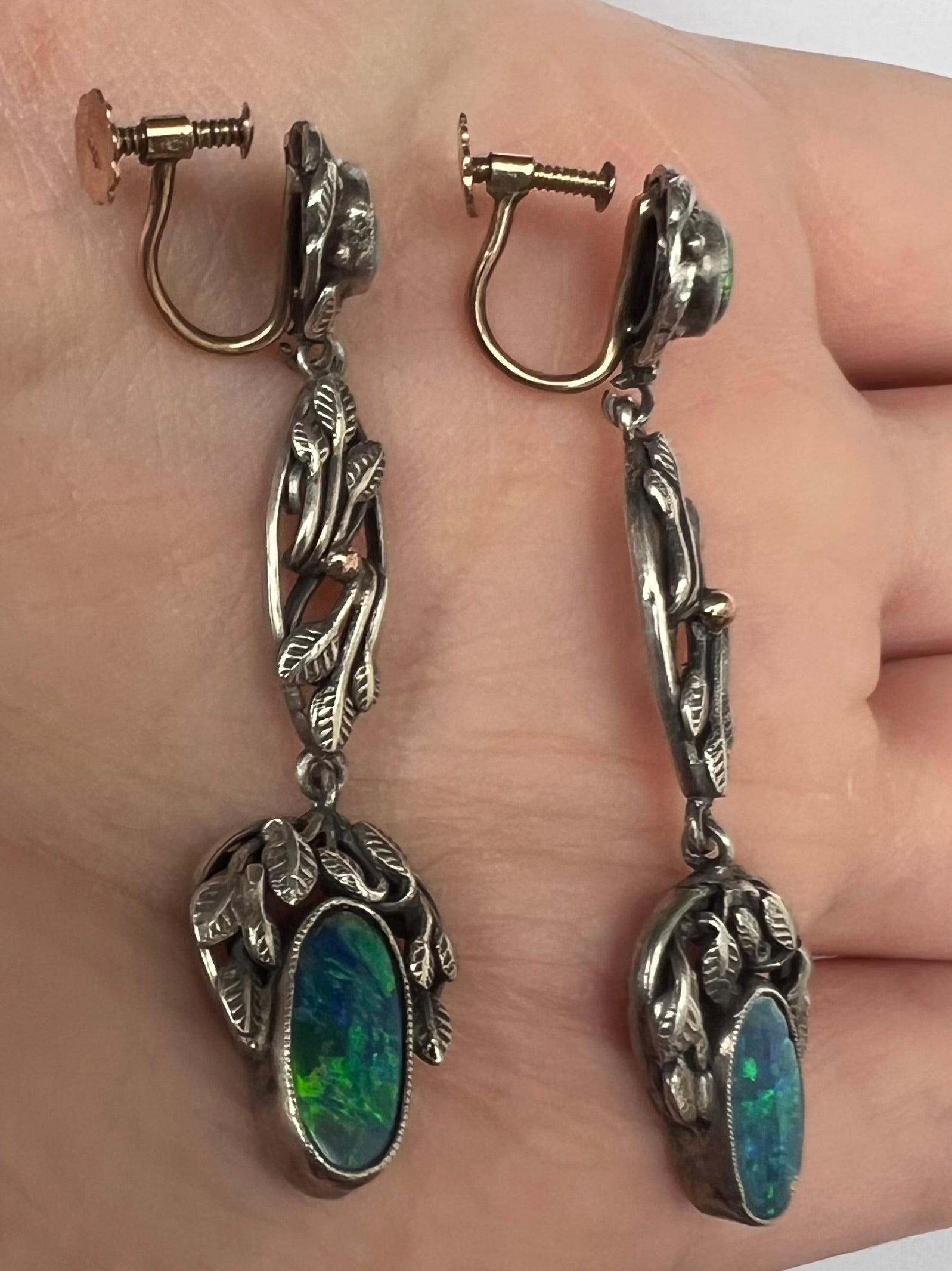 Bernard Instone Arts & Crafts Opal Dangly Screw Back Earrings