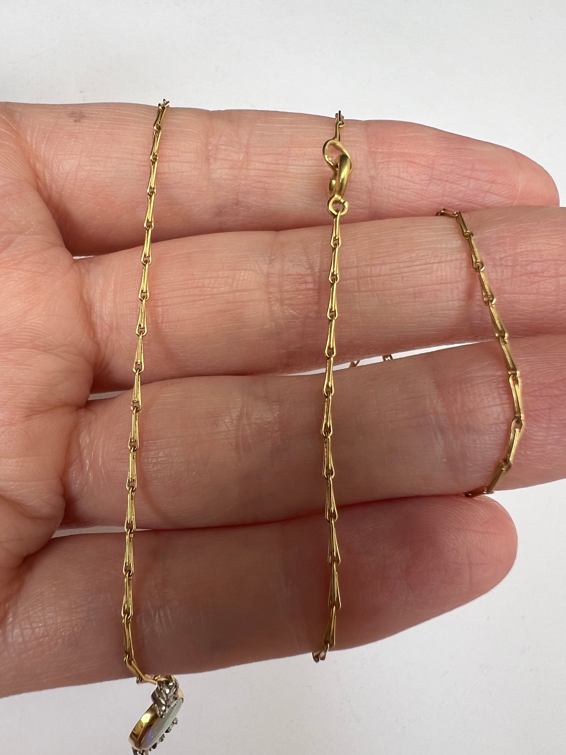 Size and weight: pendant 2cm including bail , opal 0.8cm wide, chain 39cm 15.35" 3.9g