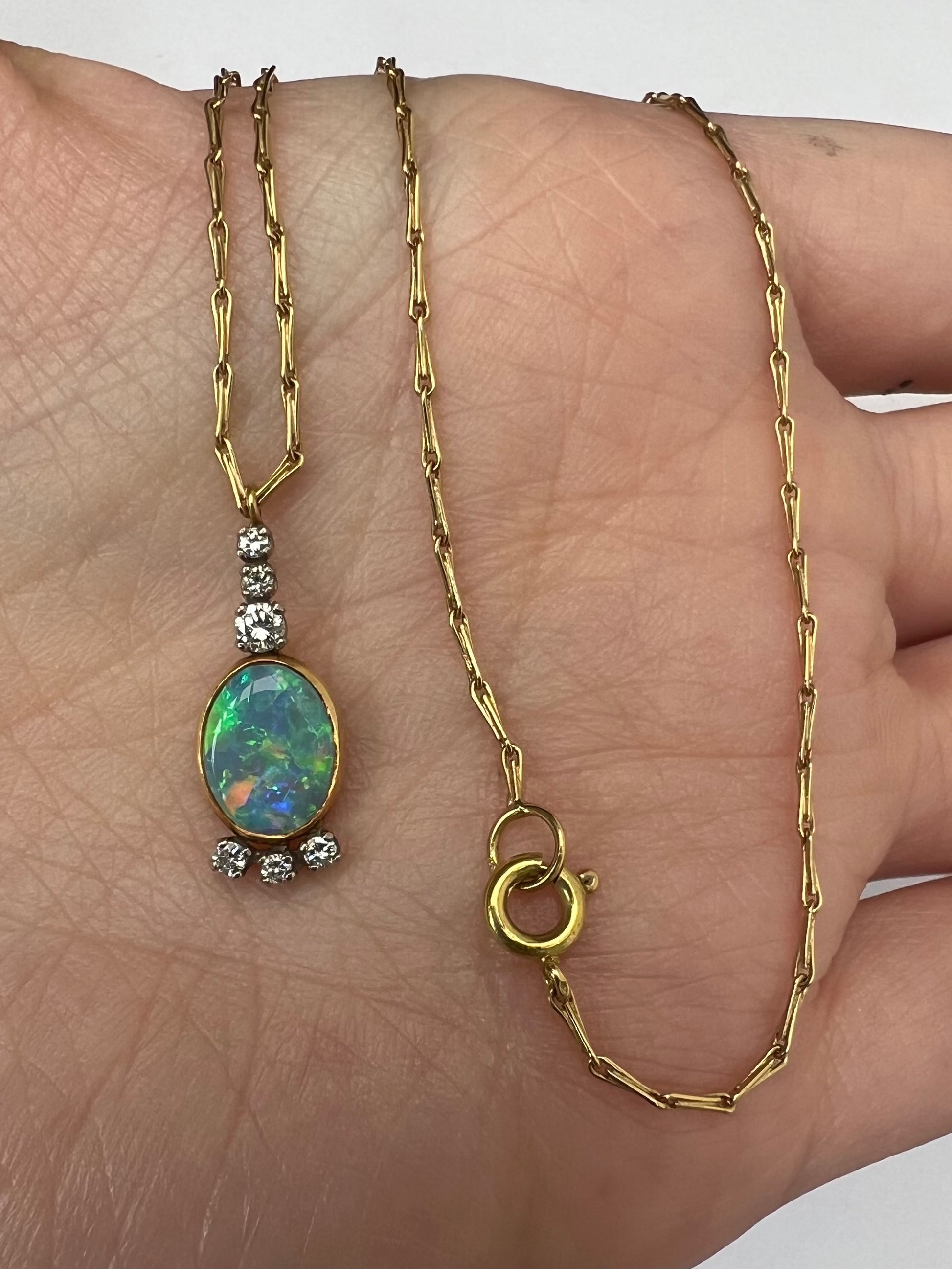 Australian Opal Diamond Pendant and Chain in 18ct Gold