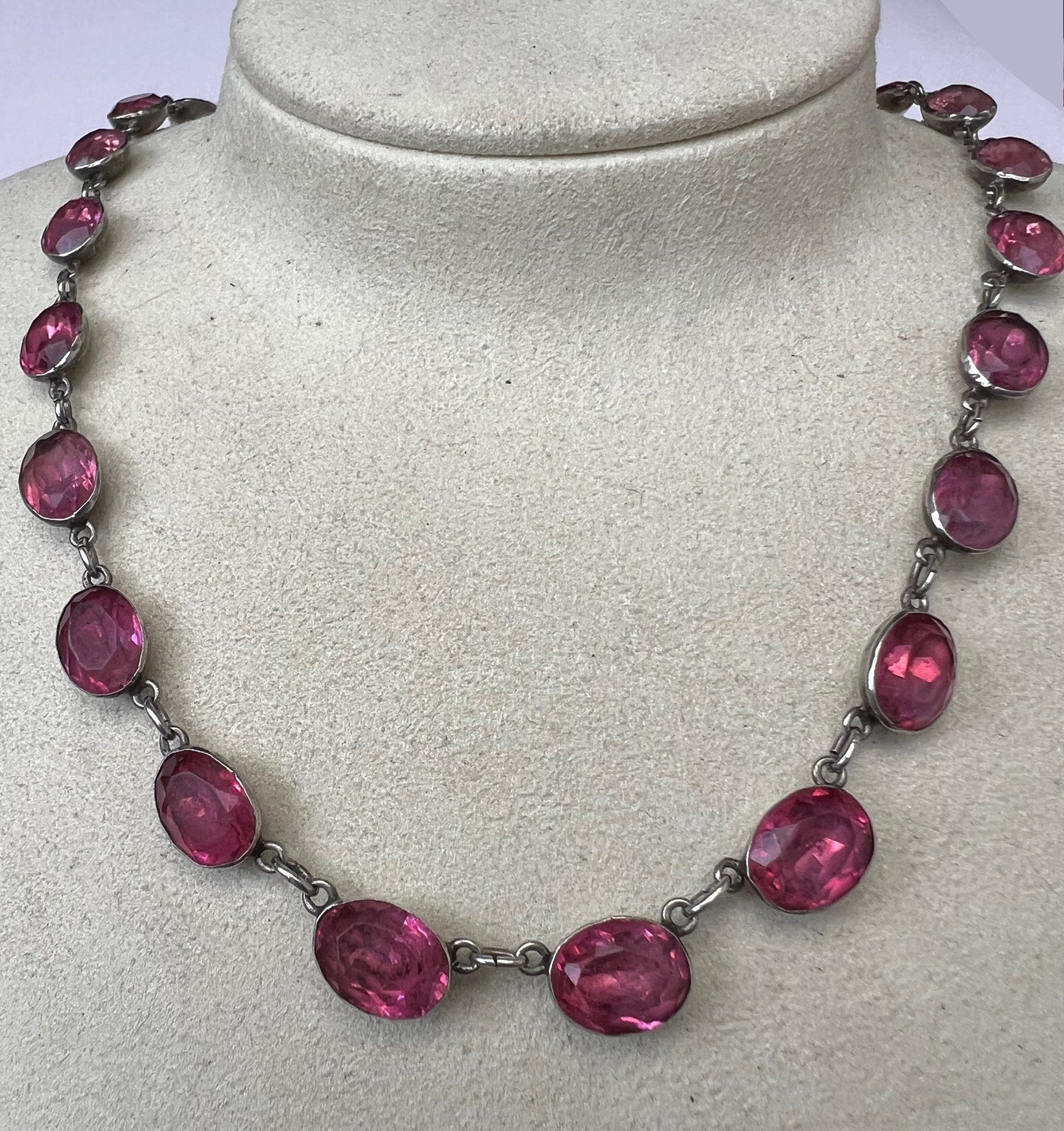 Description: Sumptuous pink Regency period rivière necklace, very pretty with lovely, fat bubble backs - and a real survivor - not many of these have lived to tell the tale!