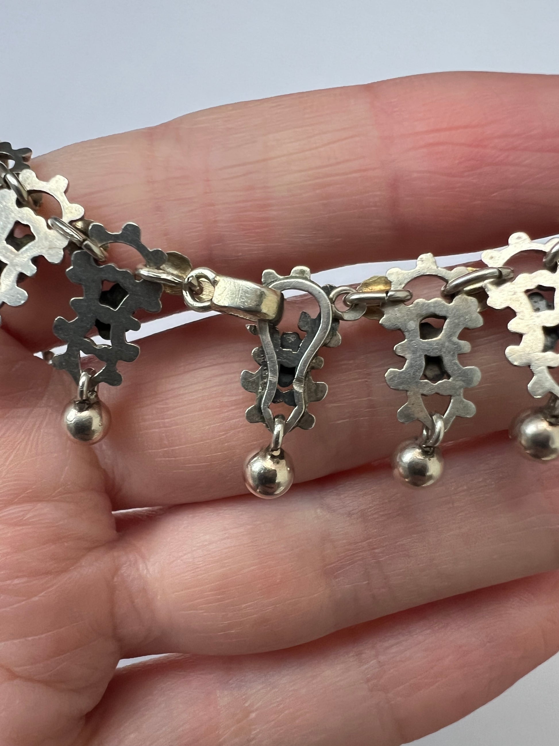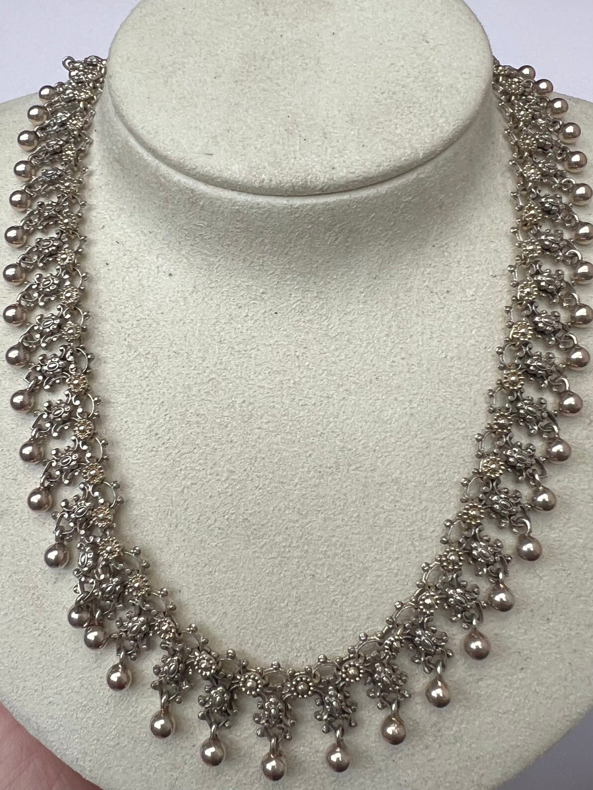 Beautifully Cast Victorian Silver Floral Neck Chain Collar
