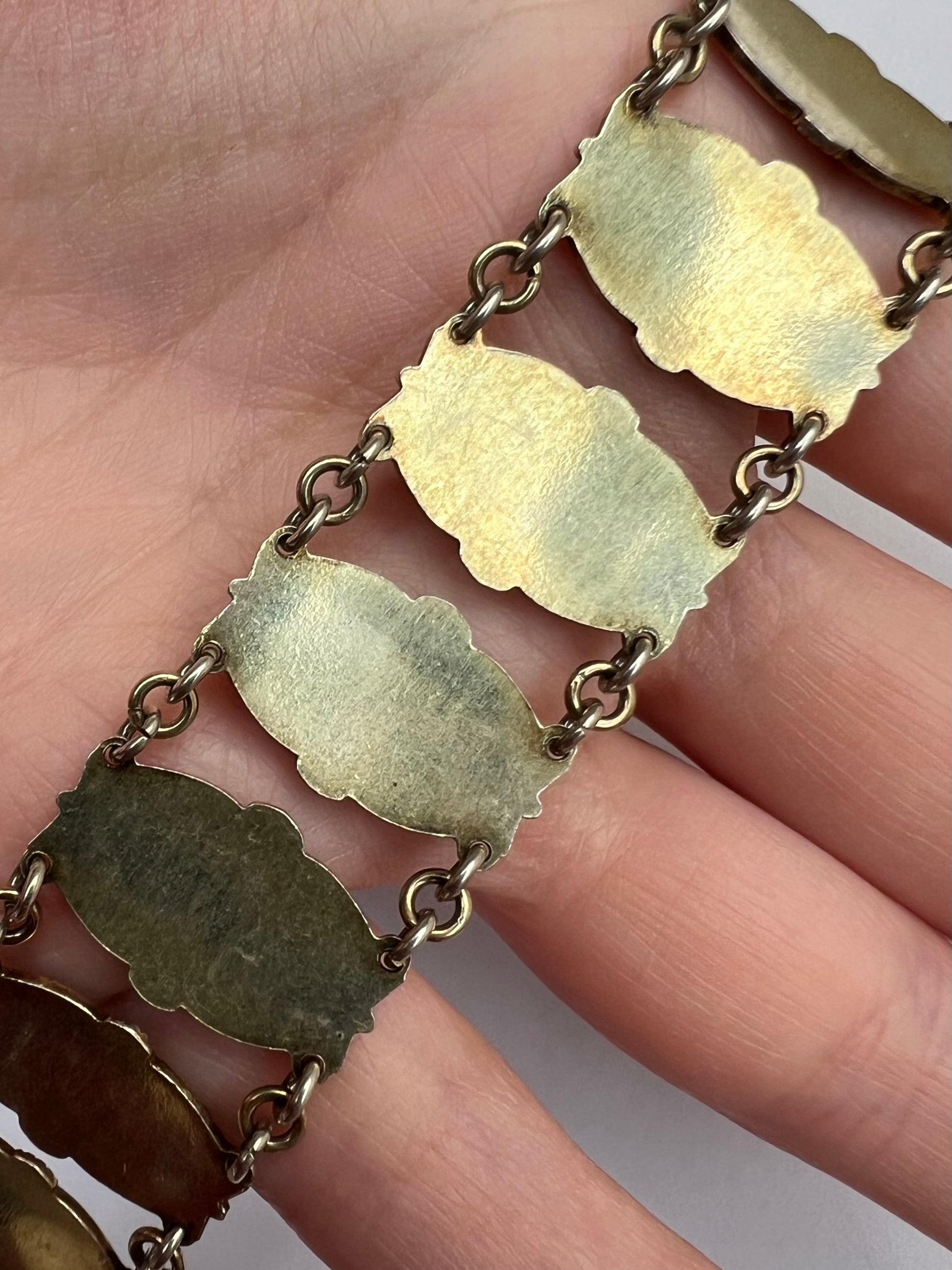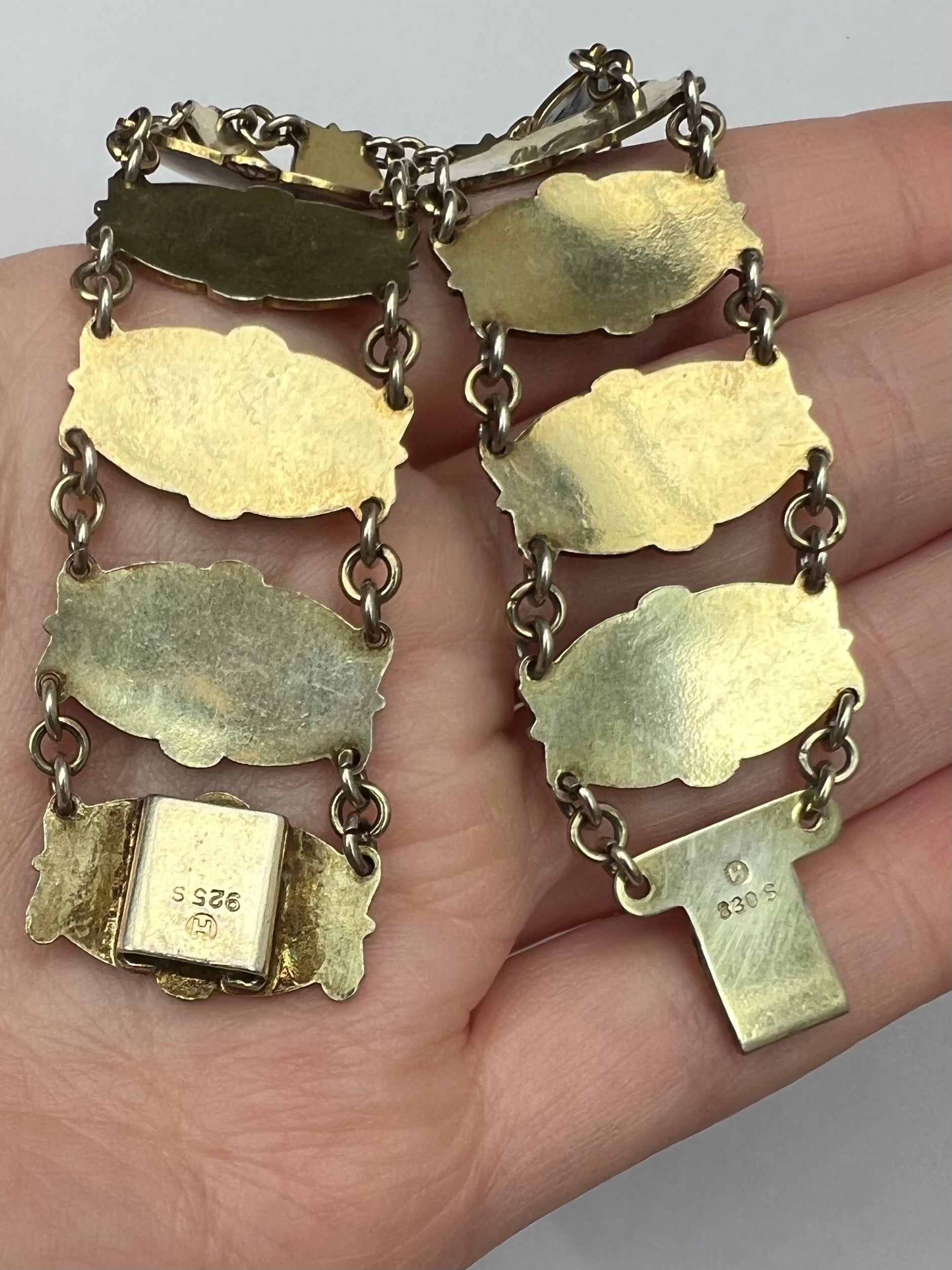 Description: This is the best example of this type of bracelet from Holmsen that we've seen. Lots going on, stags, birds, reindeers, chickens, all sorts! Plenty of panels and superb enamelling.