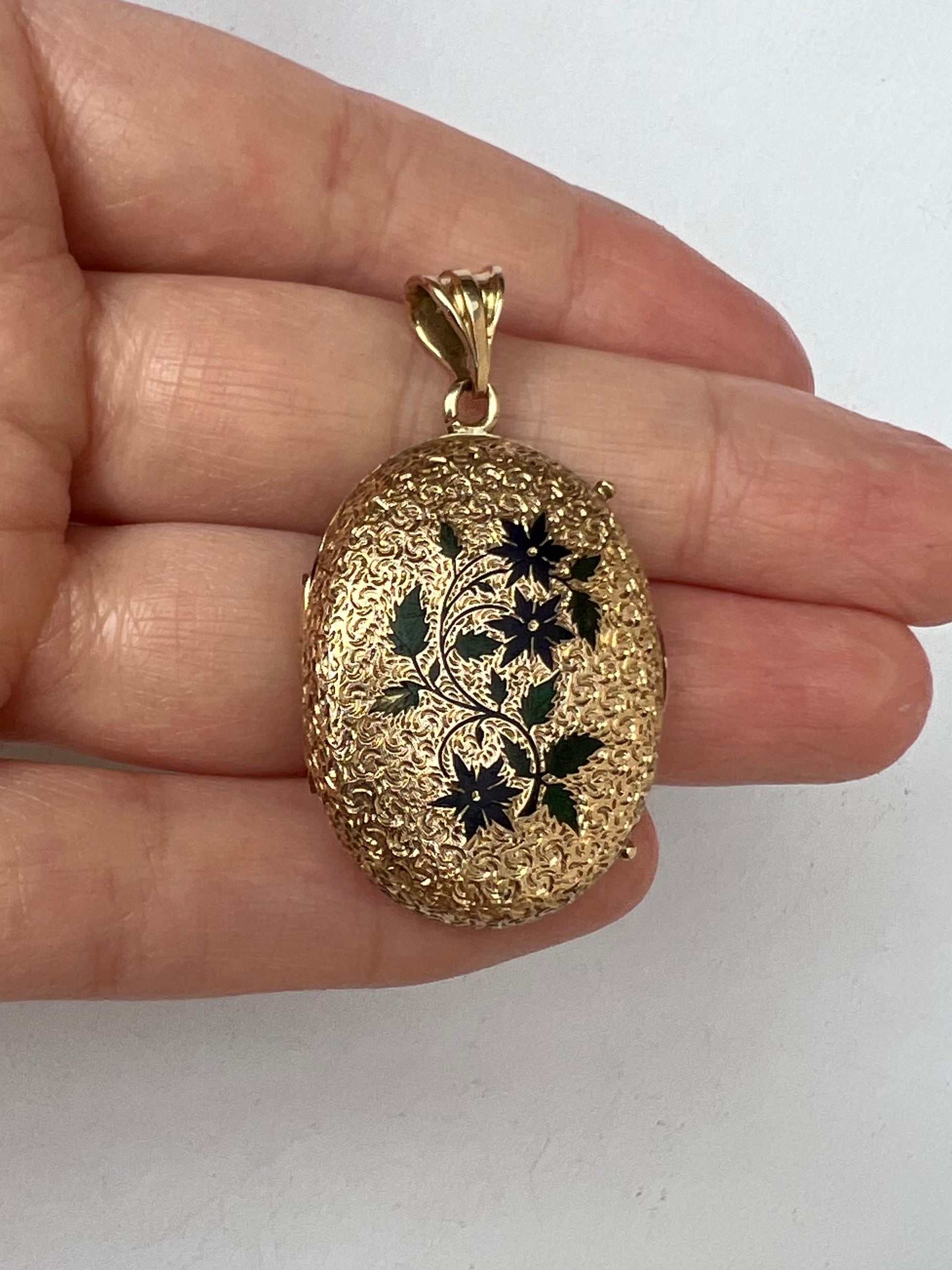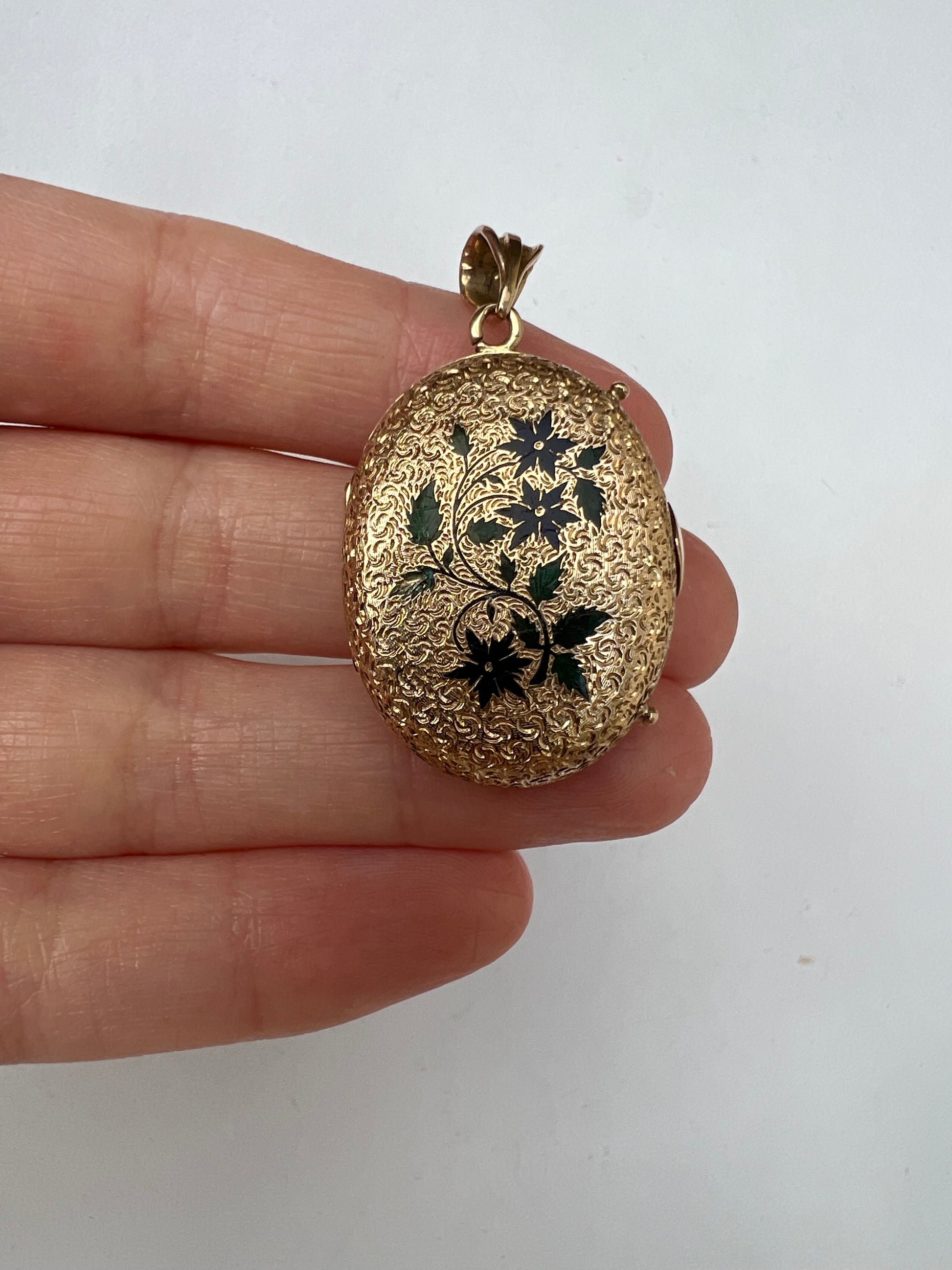 Swiss Gold & Enamel Flowers Night and Day Antique Locket