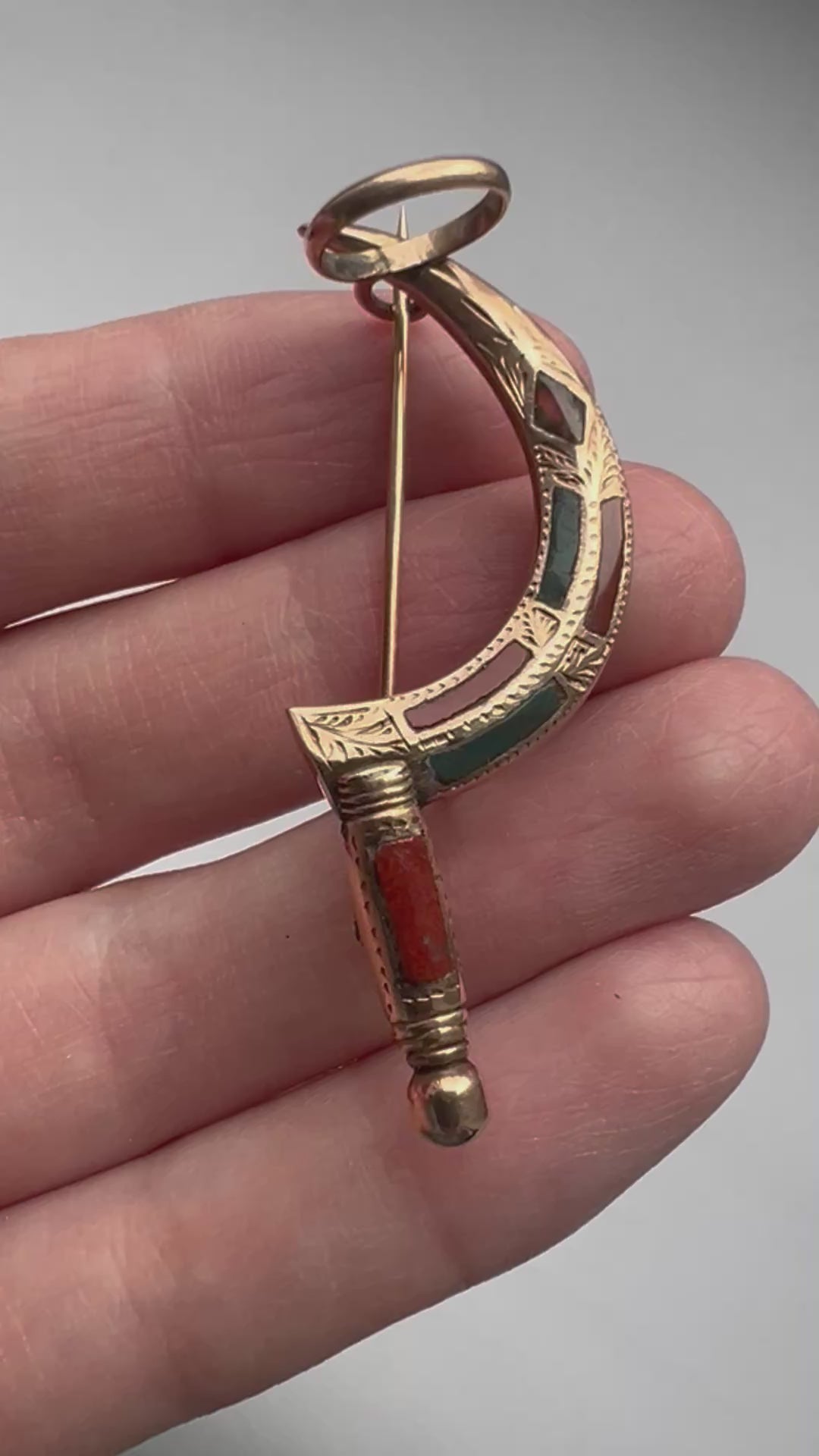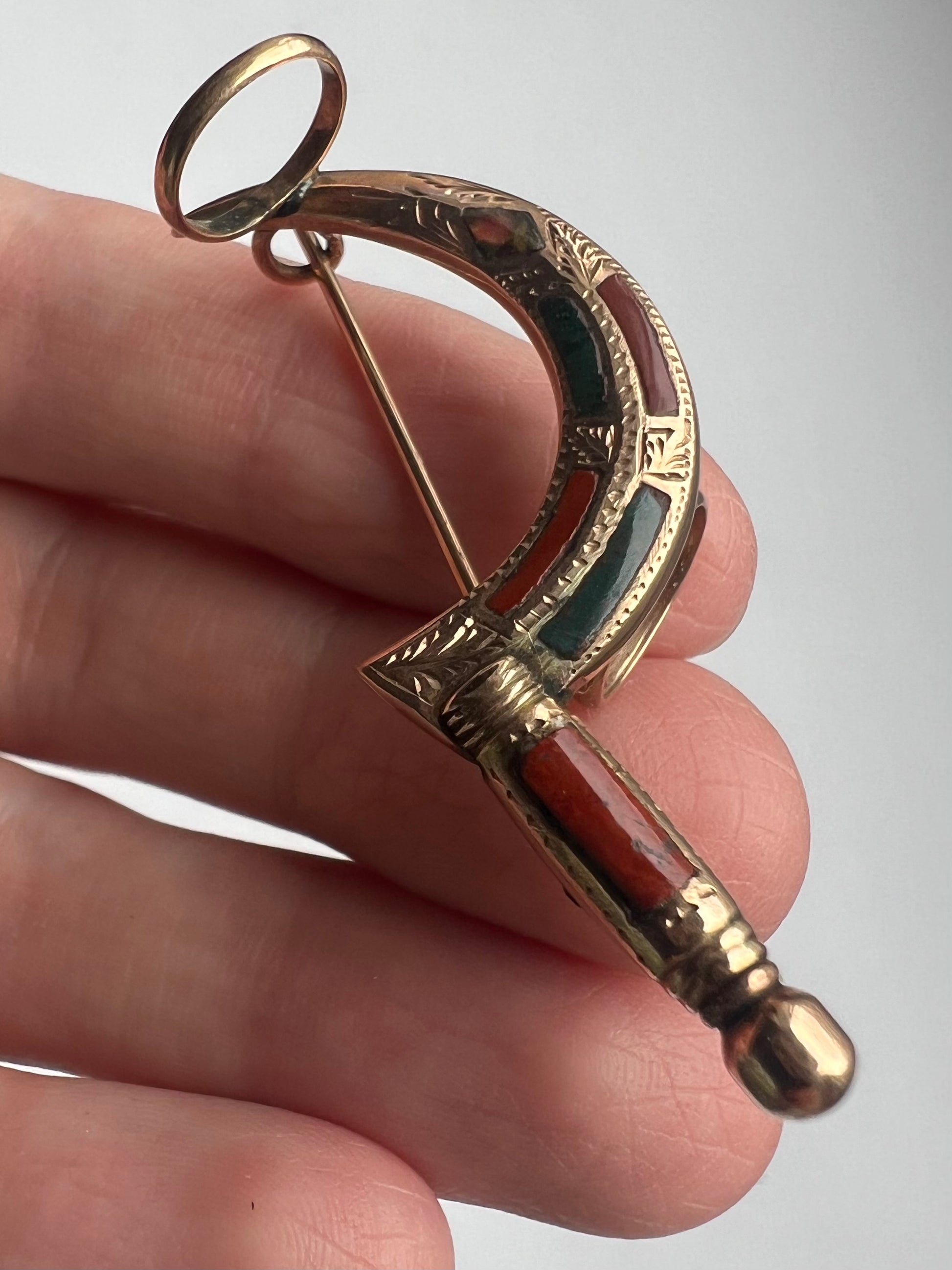 Scottish Wedding Gents Posy Holder R.L Christie Edinburgh Rare Gold Scimitar Pebble Jewellery Brooch