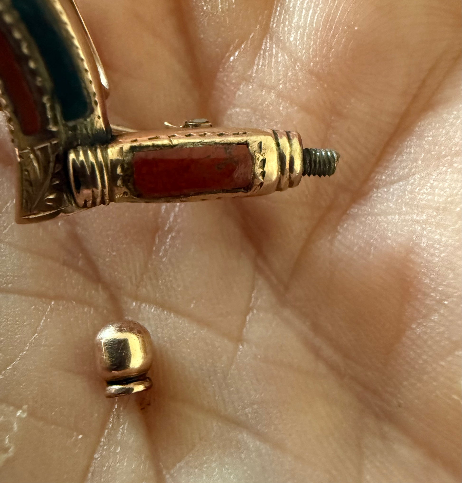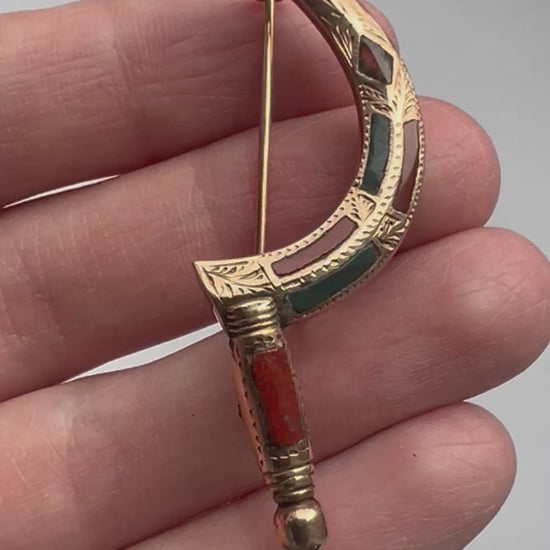 Materials: 9ct gold, Scottish hardstones, possibly bloodstone and Jasper.