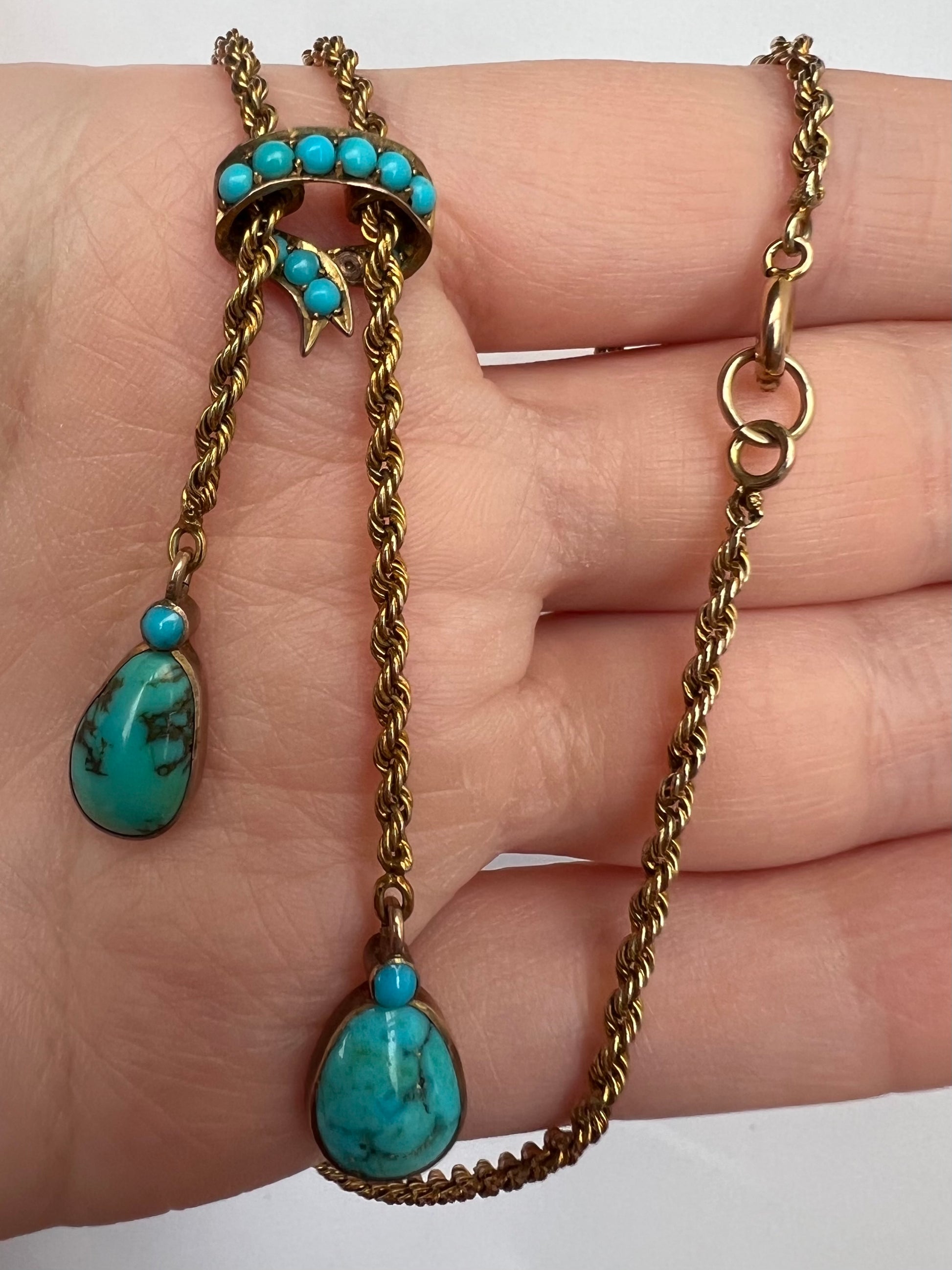 c1915 Turquoise & Gold Negligee Double Drop Pendant Necklace