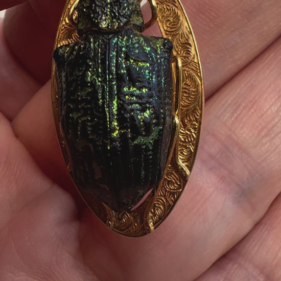 Victorian Gold Real Mounted Beetle Bug Pendant