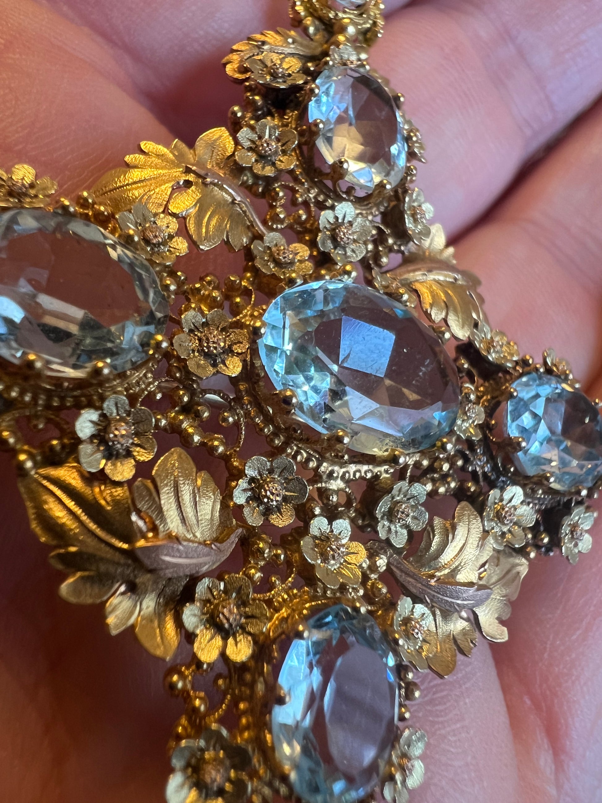 Outstanding William IV Aquamarine Gold Cross Brooch Pendant